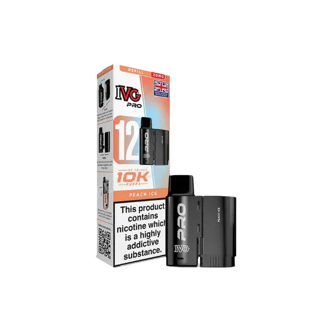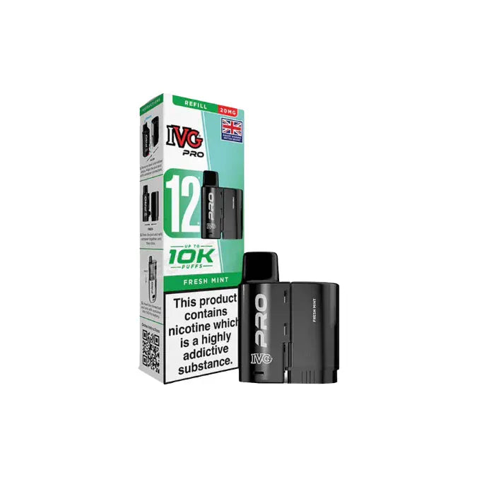 The 20mg IVG Pro 12 Prefilled Pods offer an exceptional vaping experience, delivering an impressive 10,000 puffs per device. This innovative kit combines a 2ml prefilled pod with a 10ml auto-refill tank, ensuring a long-lasting and convenient vaping solution. Featuring advanced mesh coil technology, these pods provide enhanced flavour and performance with every draw. The 20mg nicotine salt e-liquid offers a smooth throat hit, perfect for satisfying cravings quickly and efficiently. Designed with UK regulations in mind, this TPD-compliant product is ideal for vapers seeking a hassle-free, high-capacity option. The IVG Pro 12 boasts a sleek design with a transparent tank for easy e-liquid monitoring and USB Type-C fast charging capabilities, making it a stylish and practical choice for vapers across the United Kingdom.
